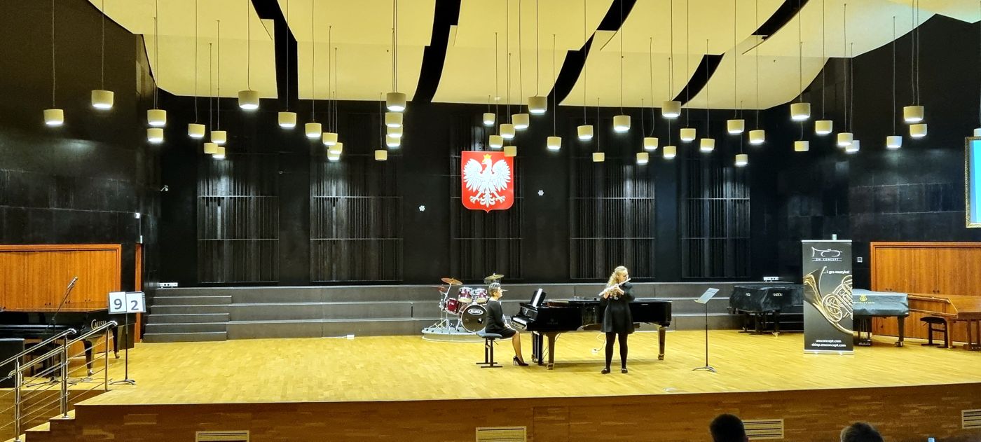 Młoda flecistka wywalczyła także wyróżnienie na IX Konkursie Fletowym im. Mariana Katarzyńskiego w Katowicach, rekomendowanym przez Ministerstwo Kultury i Dziedzictwa Narodowego. W konkursie tym zaprezentowała się również Amelia Misiewicz. Uczniom podczas zmagań towarzyszyli przy fortepianie: Anna Materniak i Daniel Eibin. Nauczycielowi, uczniom i akompaniatorom serdecznie gratulujemy i życzymy dalszych sukcesów.