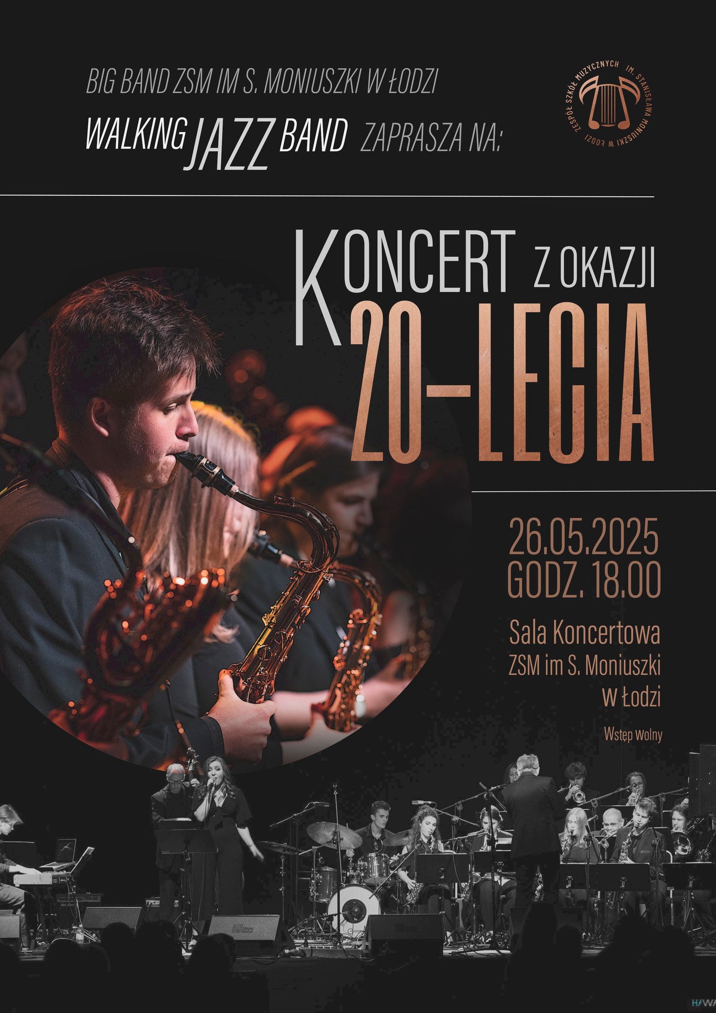 Z okazji 20-lecia działalności Big Bandu działającego przy Zespole Szkół Muzycznych im. Stanisława Moniuszki w Łodzi, serdecznie zapraszamy na wyjątkowy Koncert Jubileuszowy, który będzie nie tylko muzycznym świętem, ale także wzruszającym spotkaniem pokoleń!