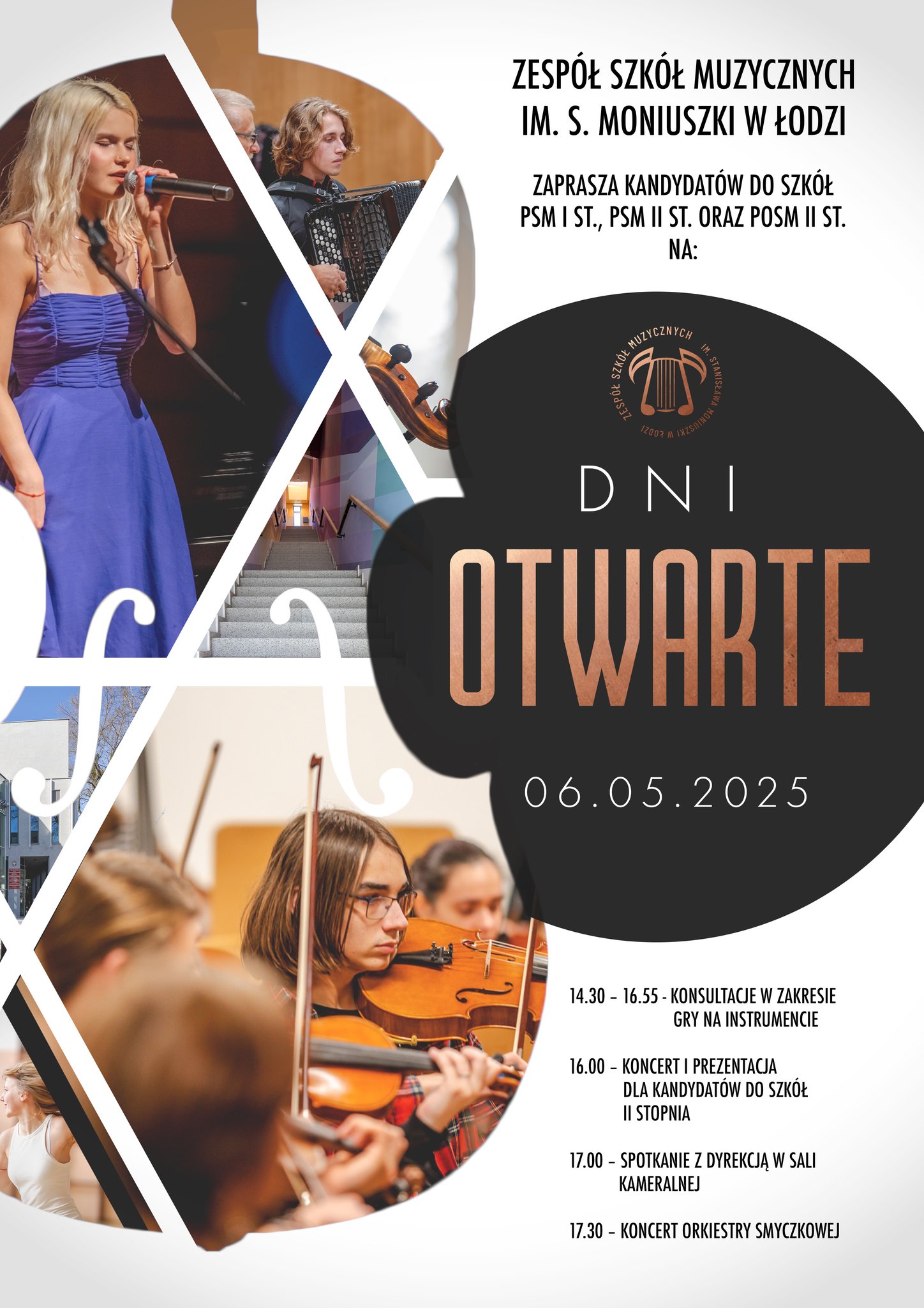Serdecznie zapraszamy kandydatów do PSM I i II stopnia oraz POSM II st. oraz ich rodziców na Dzień Otwarty, który odbędzie się 6 maja w ZSM im. S. Moniuszki w Łodzi. To doskonała okazja, by poznać naszą ofertę edukacyjną, spotkać się z nauczycielami i posłuchać uczniów na żywo!