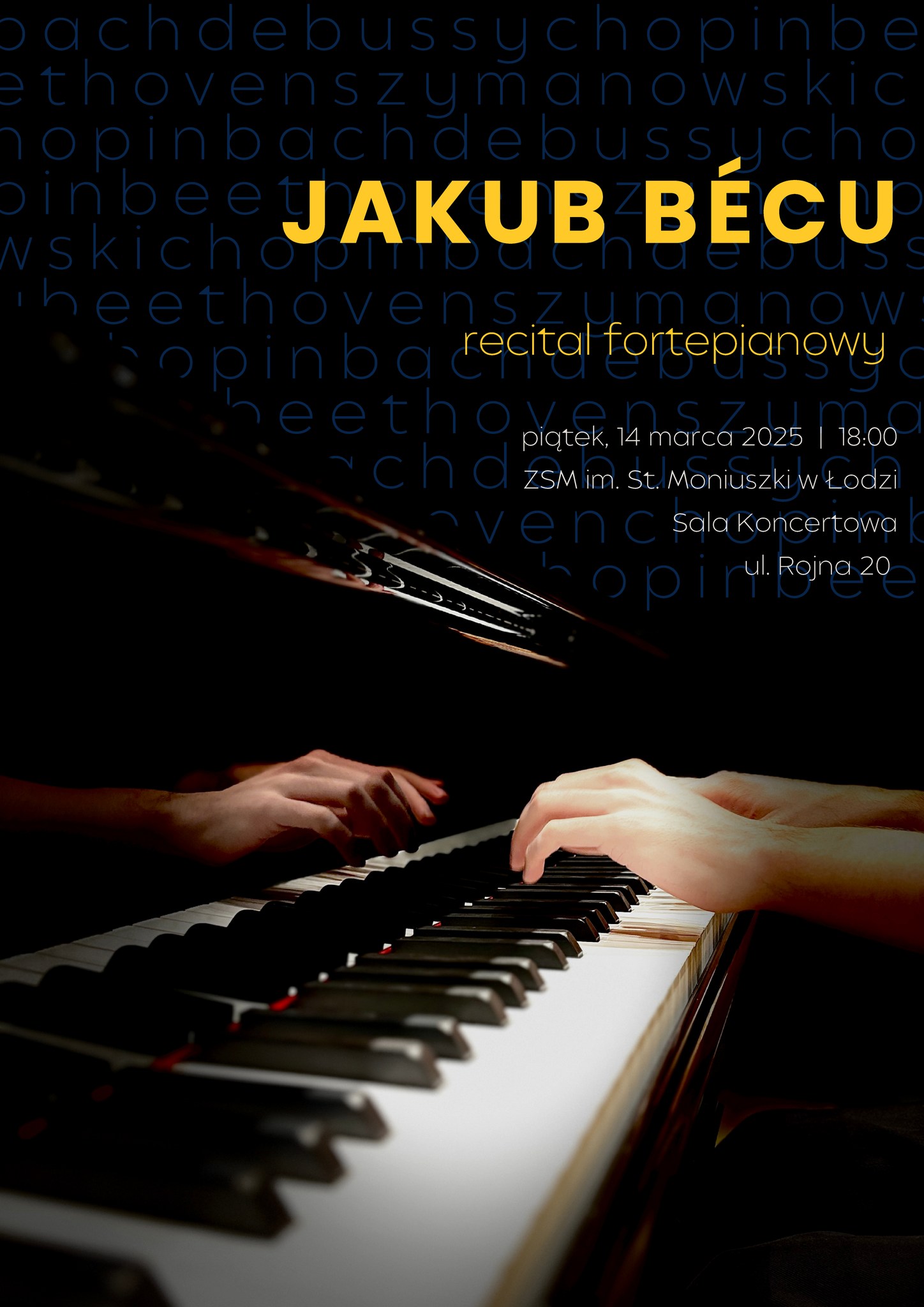 Z radością zapraszamy na koncert fortepianowy Jakuba Becu, absolwenta naszej szkoły, który odbędzie się 14 marca o godz. 18:00 w sali koncertowej ZSM.