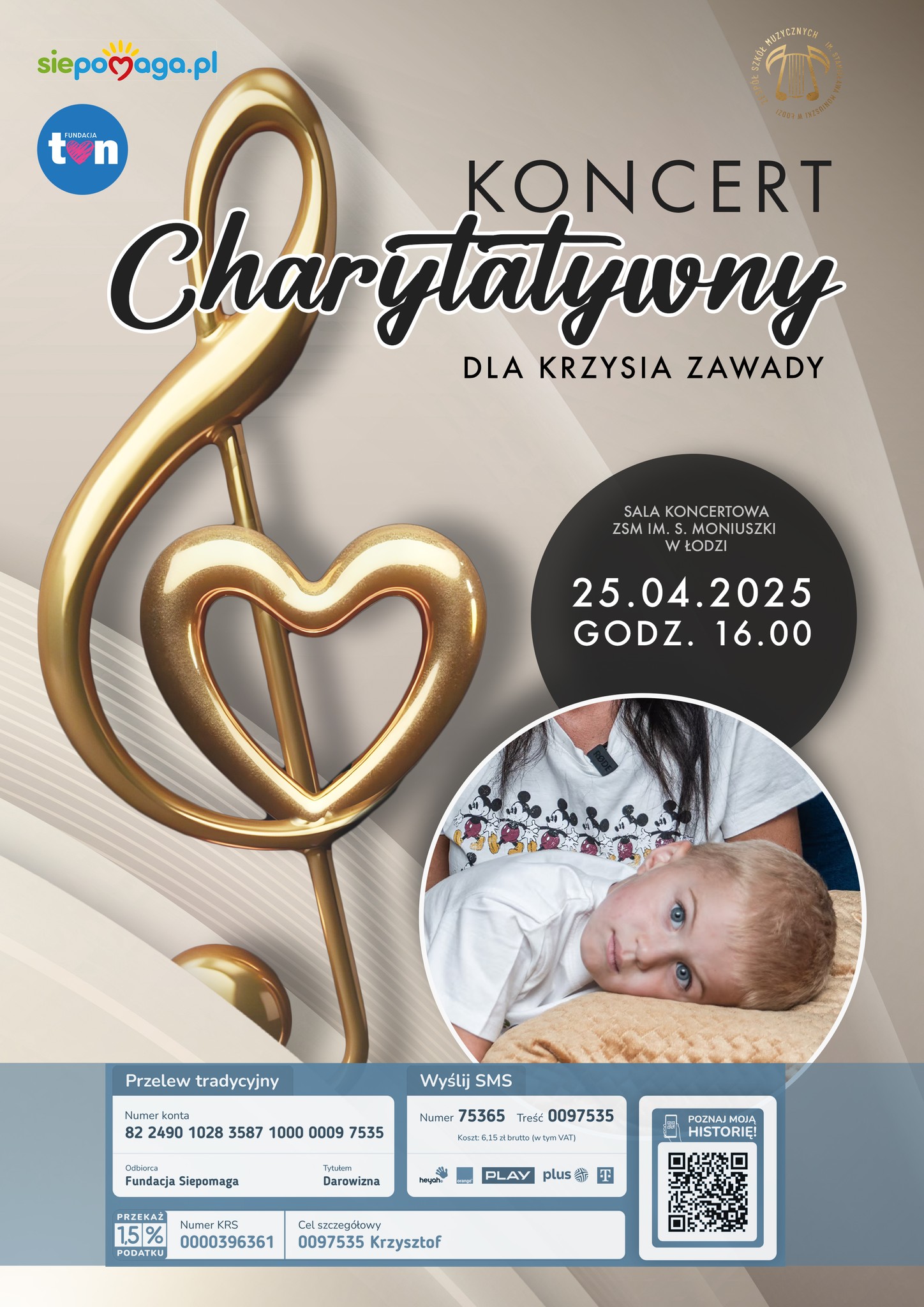 Dlatego 25 kwietnia organizujemy koncert charytatywny – wspólny gest serca, nadziei i solidarności. Cały dochód zostanie przekazany na leczenie Krzysia.