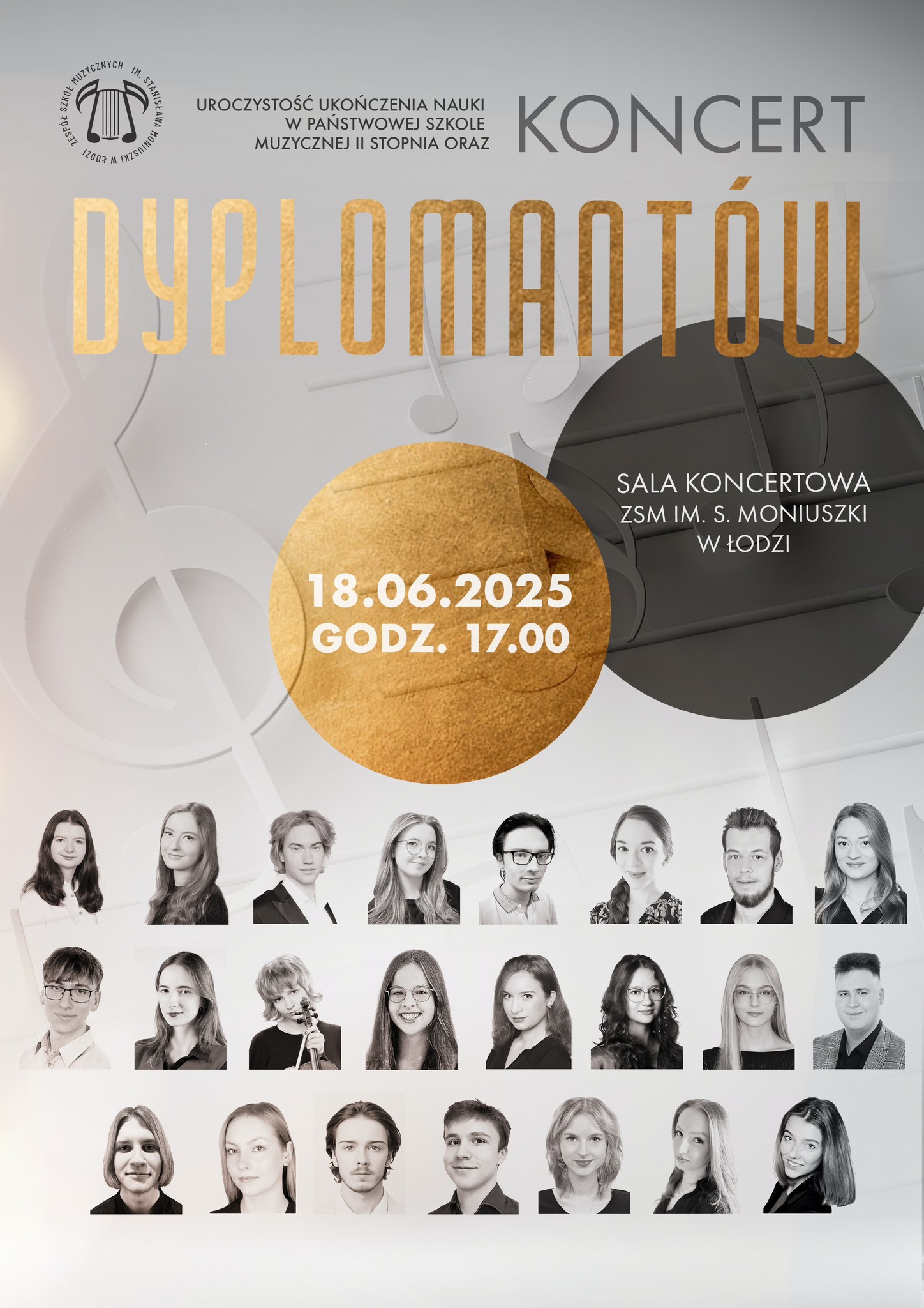 Zapraszamy na Koncert Dyplomantów, który odbędzie się 18 czerwca o godz. 17:00 w sali koncertowej ZSM im. S. Moniuszki w Łodzi.