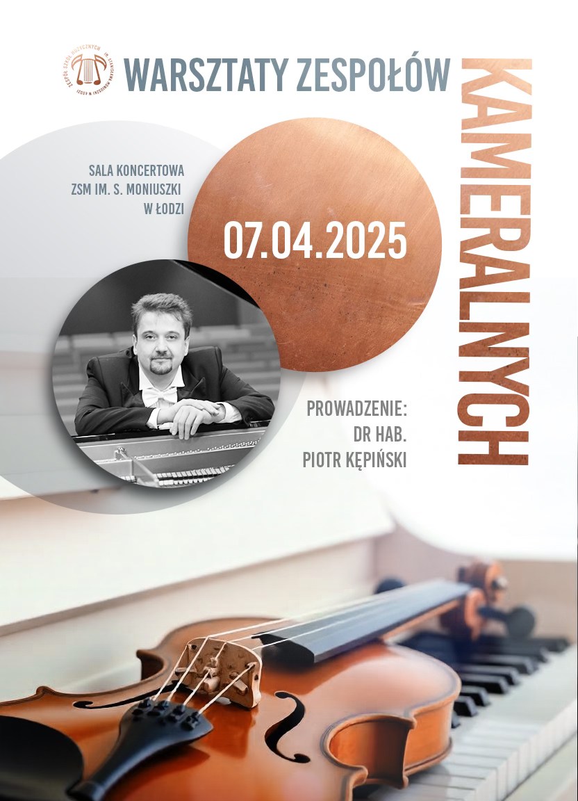Serdecznie zapraszamy na Warsztaty Zespołów Kameralnych, które odbędą się już 7 kwietnia 2025 roku w sali koncertowej Zespołu Szkół Muzycznych im. S. Moniuszki w Łodzi.