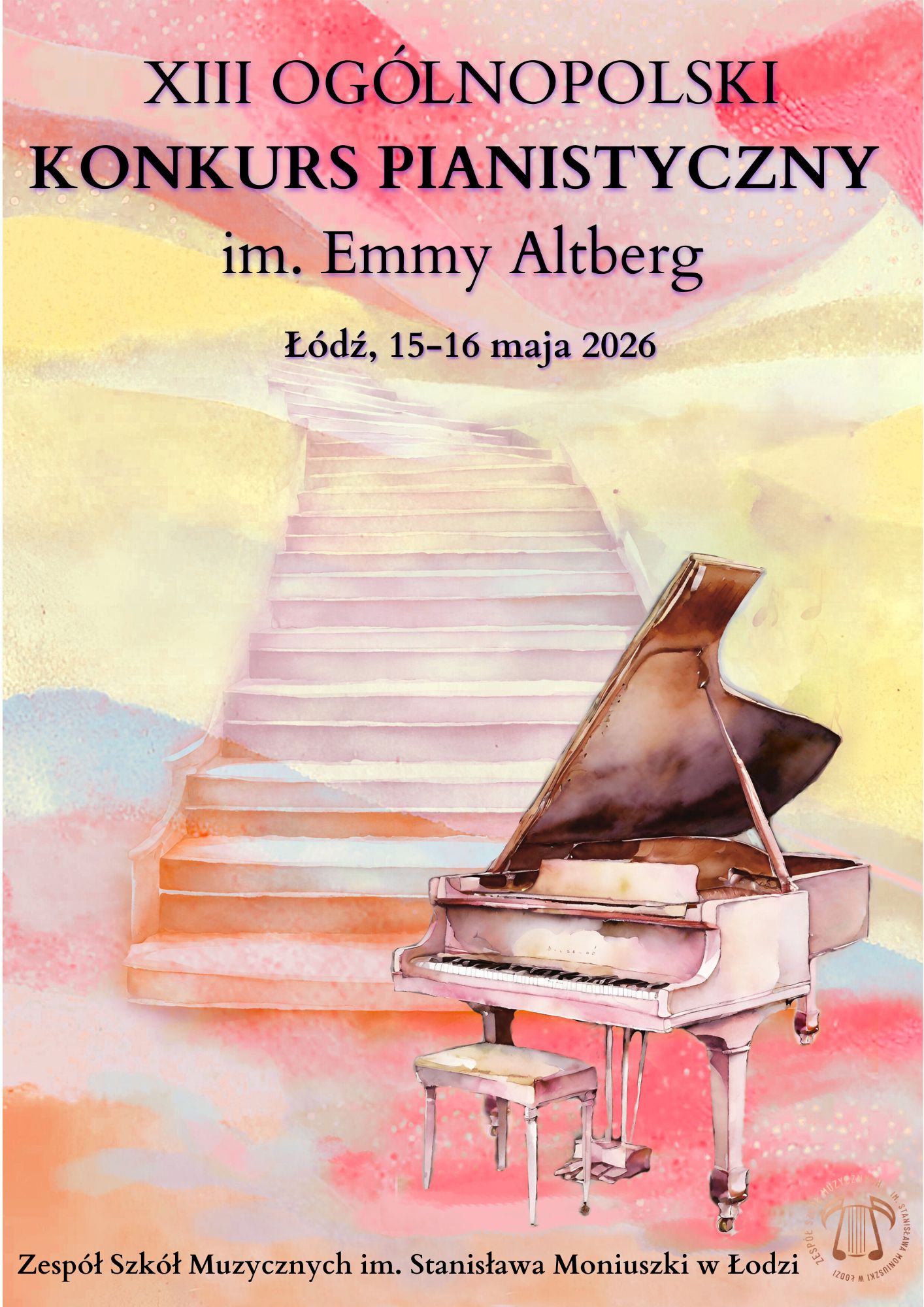 Serdecznie zapraszamy do udziału w XIII Ogólnopolskim Konkursie Pianistycznym im. Emmy Altberg, skierowanym do uczniów klas fortepianu szkół muzycznych I stopnia, który odbędzie się w dniach 15–16 maja 2026 r. w Łodzi.