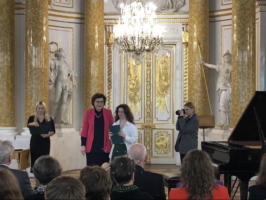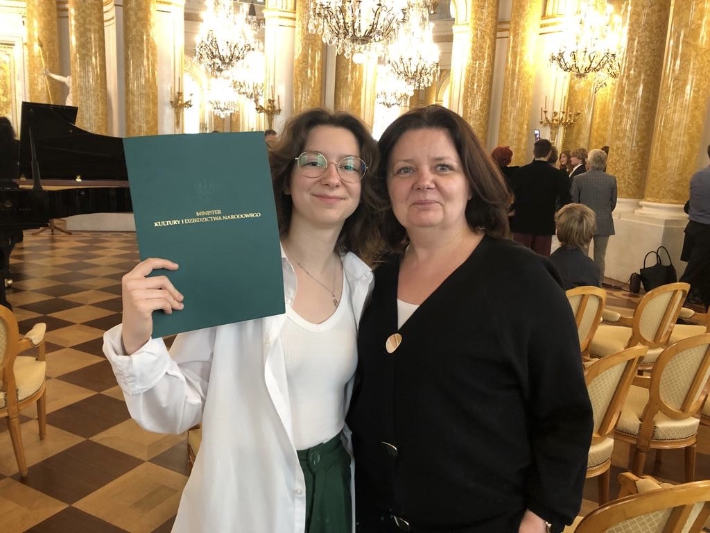 W dniu 8 listopada 2023 roku utalentowana uczennica naszej szkoły – Angelina Litwinienko otrzymała stypendium Ministra Kultury i Dziedzictwa Narodowego za osiągnięcia artystyczne. Uroczystość wręczenia nagród odbyła się na Zamku Królewskim w Warszawie. Stypendium Ministra otrzymało w tym roku tylko 78 uczniów, tym bardziej cieszy nas tak prestiżowa nagroda. Więcej o tym wydarzeniu na stronie: www.gov.pl