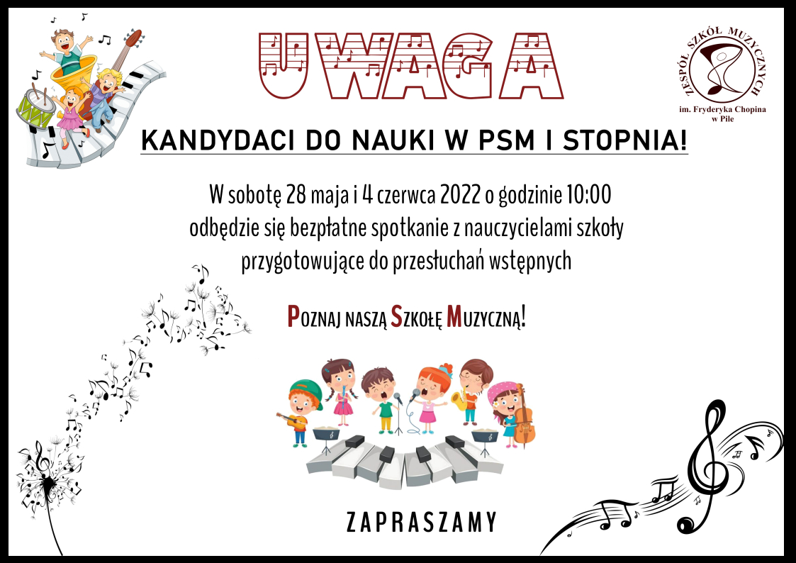 Poznaj naszą Szkołę Muzyczną ! 21.05.2022 PSM I stopnia zaprasza 28 maja i 4 czerwca o godzinie 10:00 na : spotkania przygotowujące kandydatów do podjęcia nauki w szkole muzycznej - "Poznaj naszą Szkołę Muzyczną ! " Zdjęcia (1) Pokaż zdjęcie 1 z galerii.