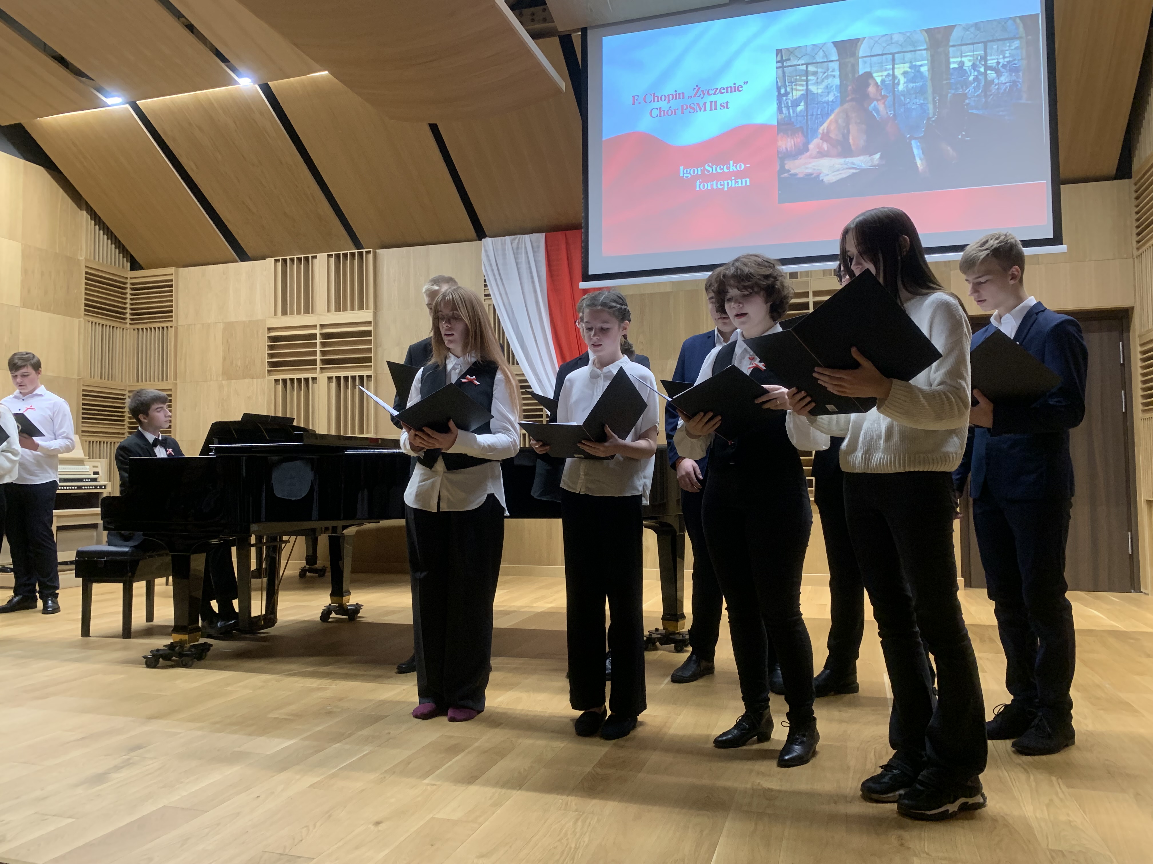 Serdecznie zapraszamy na koncert pieśni patriotycznej „Śpiewamy dla Niepodległej” w wykonaniu nauczycieli i uczniów Zespołu Szkół Muzycznych im. F. Chopina oraz Chóru II stopnia pod dyrekcją Tatiany Kujawskiej-Tubiszewskiej.