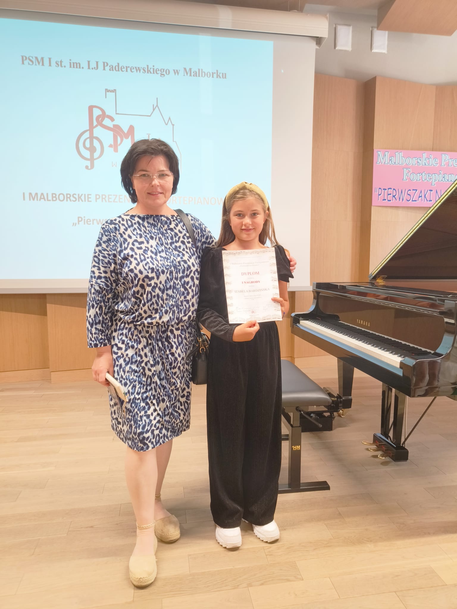Izabela, która uczy się pod opieką Pani mgr Beaty Albanowskiej, zdobyła I nagrodę na I Malborskich Prezentacjach Fortepianowych "Pierwszaki na estradzie". Serdeczne gratulacje dla młodej pianistki i jej nauczycielki. Życzymy nieustannego rozwoju i dalszych osiągnięć.