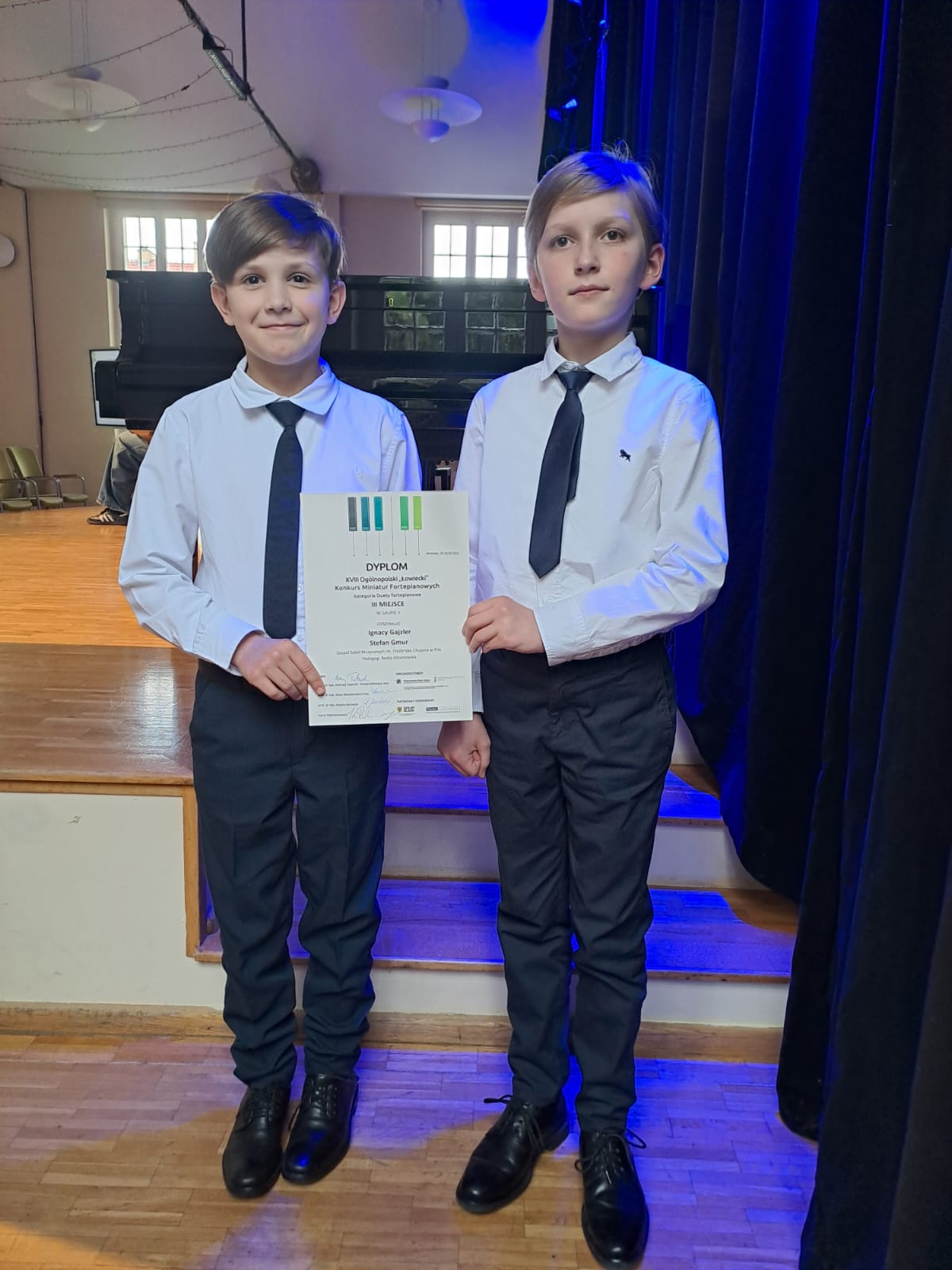 Z przyjemnością informujemy, że uczniowie pani Beaty Albanowskiej – Ignacy Gajzler i Stefan Gmur – zdobyli III miejsce w kategorii Duety fortepianowe podczas XVIII Ogólnopolskiego „Łowieckiego” Konkursu Miniatur Fortepianowych.