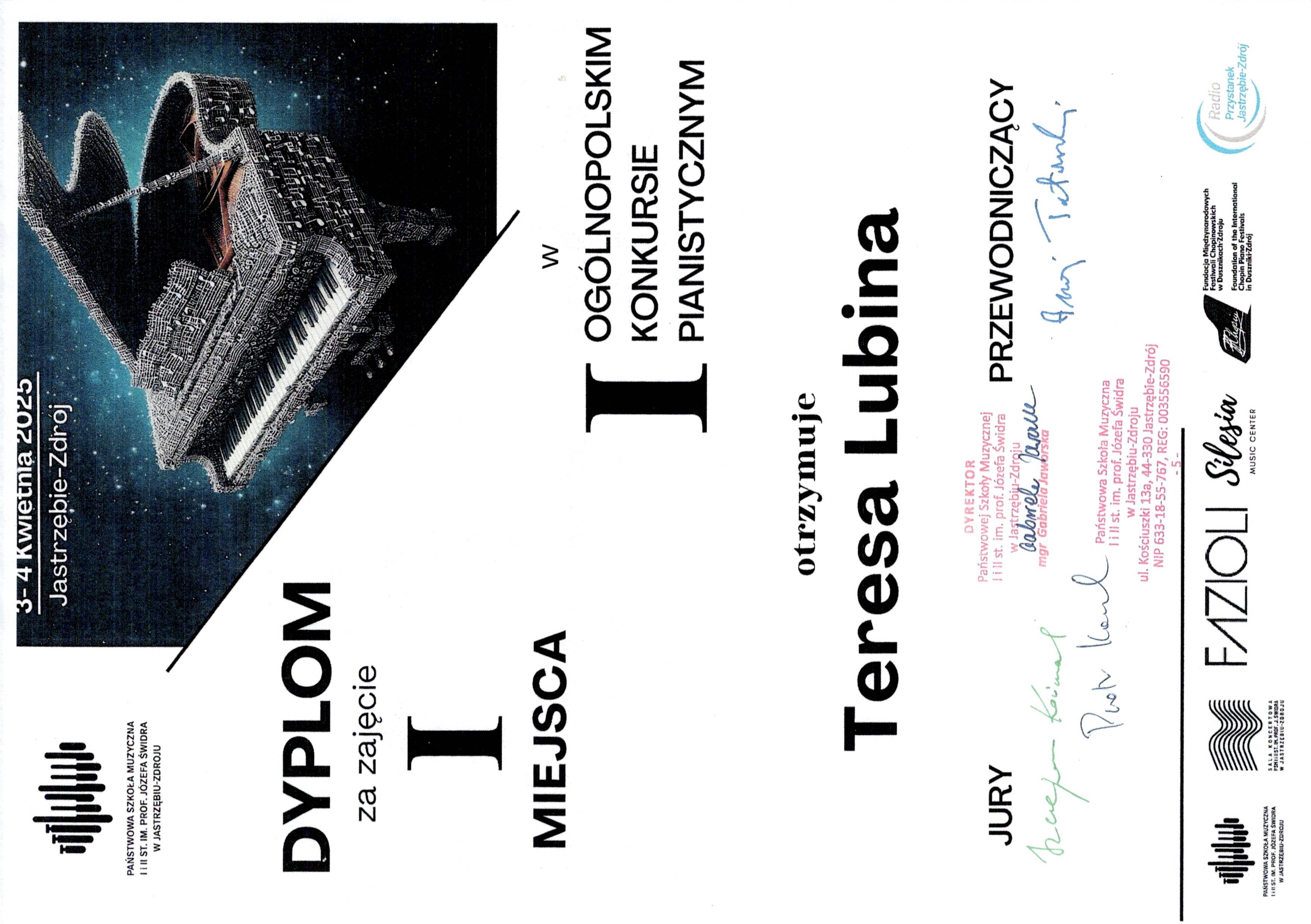 Teresa Lubina – I miejsce w I Ogólnopolskim Konkursie Pianistycznym!