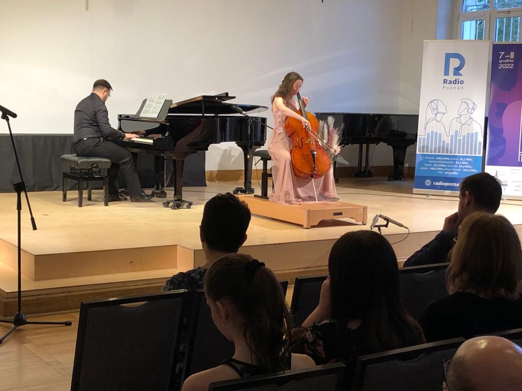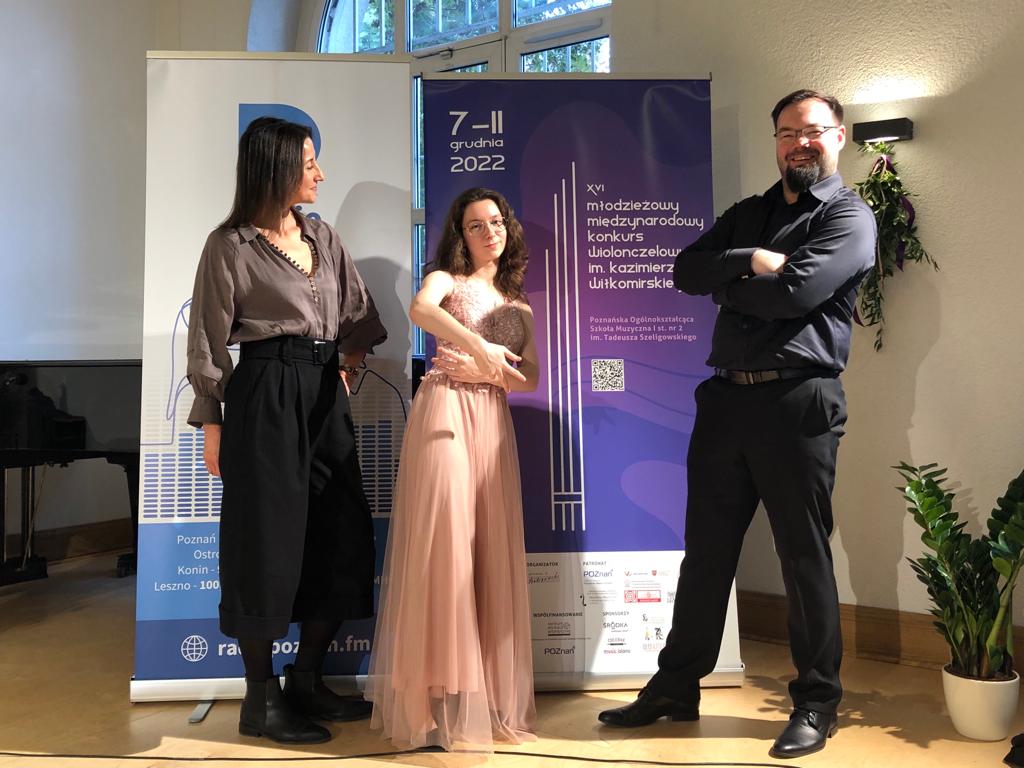 Angelina Litwinienko, uczennica V roku PSM II stopnia w klasie wiolonczeli Pani Kamili Wiśniewskiej-Czai, zajęła 3 miejsce na XVI Młodzieżowym Międzynarodowym Konkursie Wiolonczelowym im. Kazimierza Wiłkomirskiego, który odbył się w Poznaniu w dniach 7-11 grudnia 2022r.