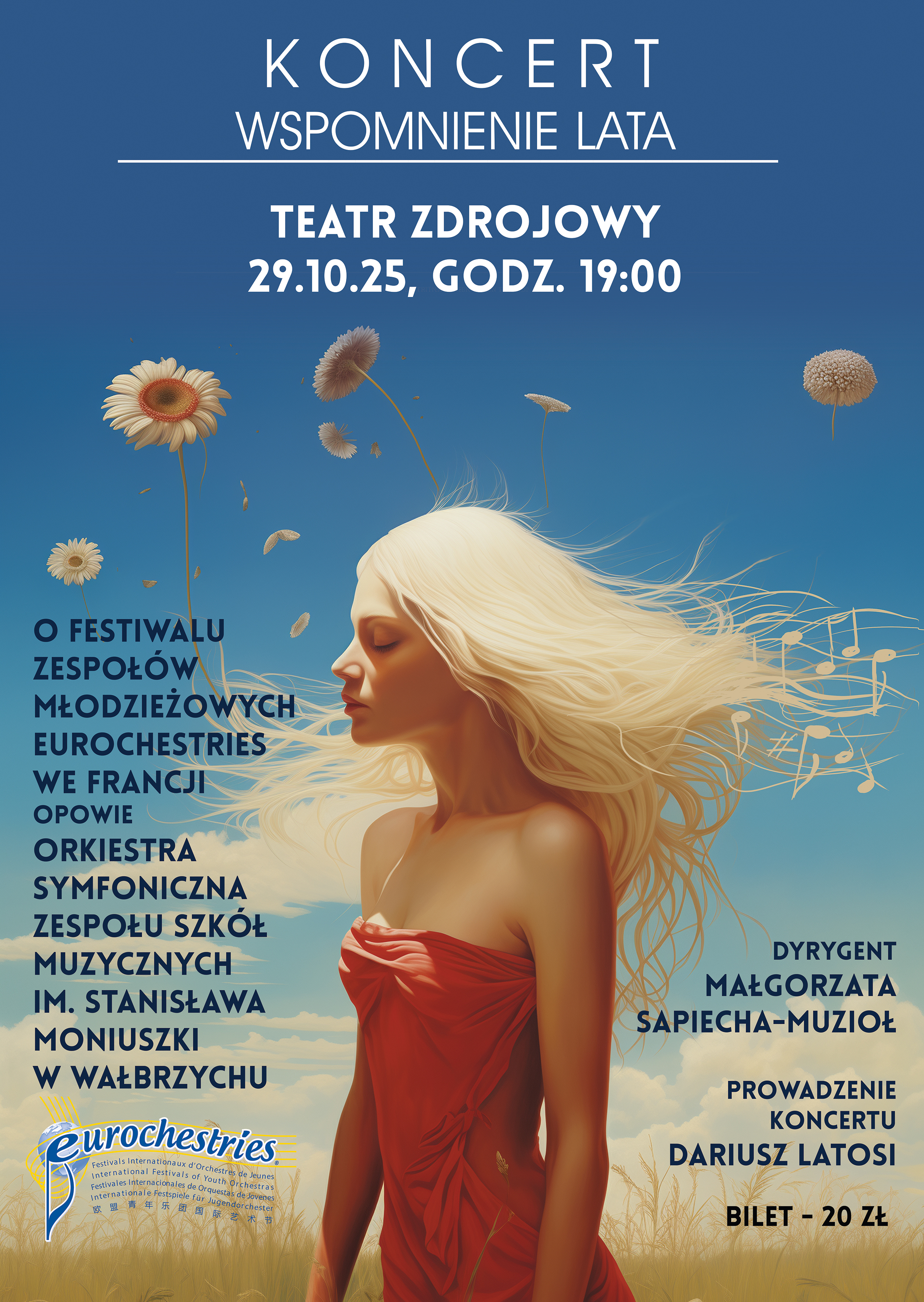 Zespół Szkół Muzycznych im. Stanisława Moniuszki w Wałbrzychu serdecznie zaprasza na koncert w wykonaniu Orkiestry Symfonicznej naszej szkoły, który będzie wspomnieniem udziału uczniów w Międzynarodowym Festiwalu Orkiestr Młodzieżowych we Francji Eurochestries.