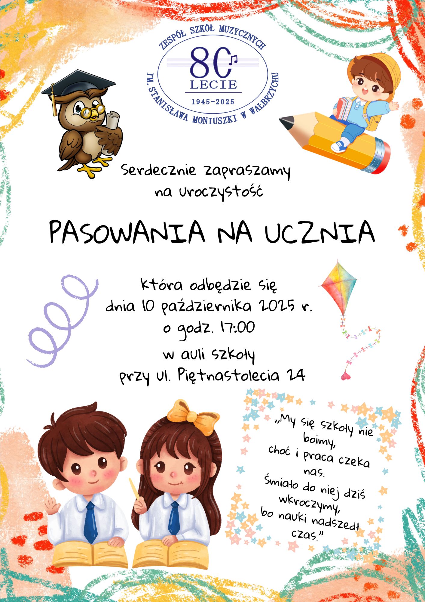 Już 10 października 2025 roku o godzinie 17:00 w auli szkoły przy ulicy Piętnastolecia 24 odbędzie się uroczyste pasowanie na ucznia.
