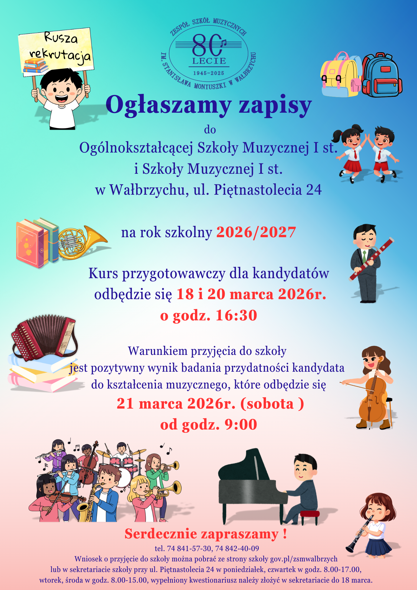 Rekrutacja do Ogólnokształcącej Szkoły Muzycznej i Szkoły Muzycznej I stopnia na rok 2026/2027