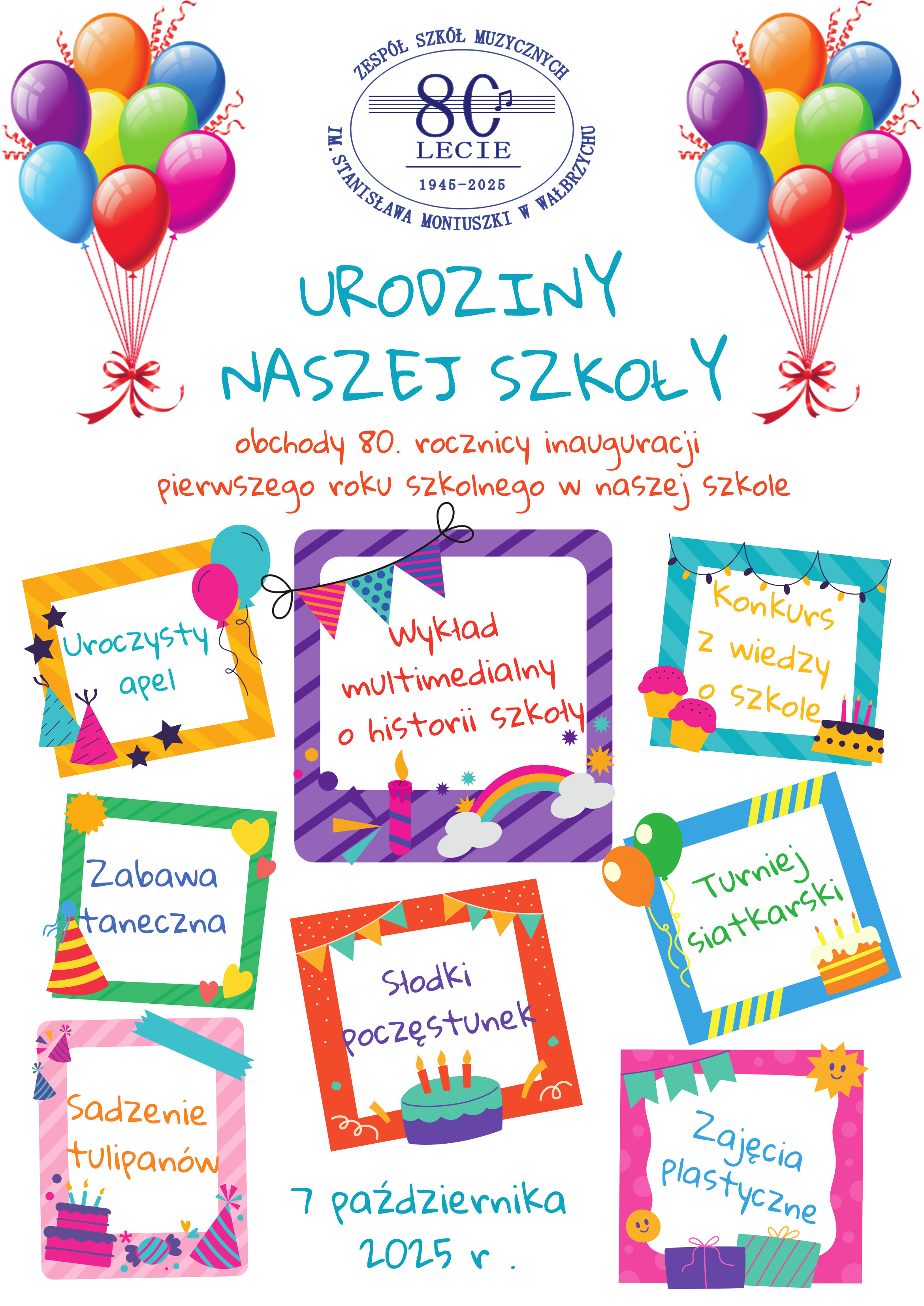 Z ogromną dumą i radością zapraszamy całą społeczność szkolną — uczniów i nauczycieli— do wspólnego świętowania 80. rocznicy inauguracji naszej szkoły.