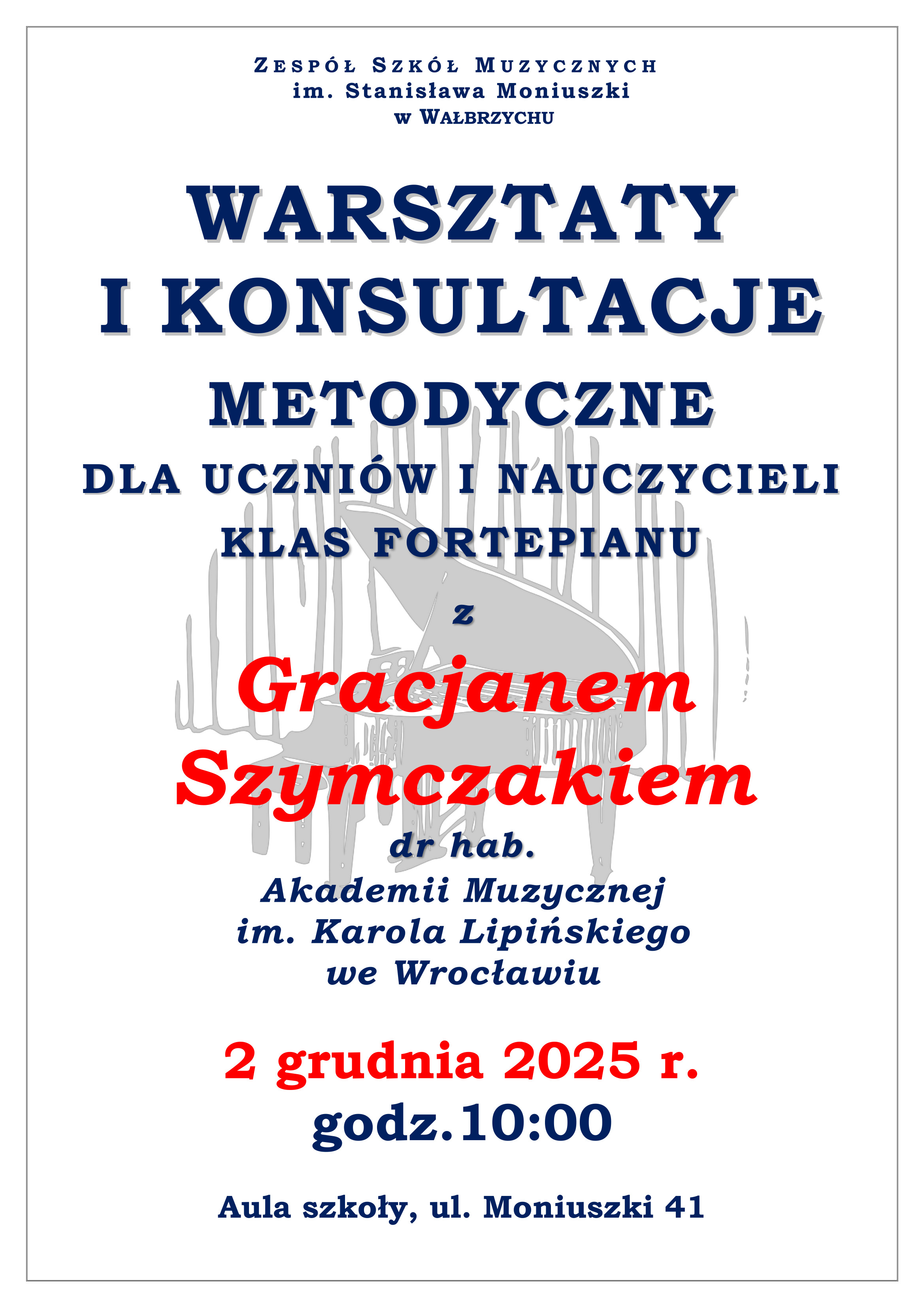 Warsztaty i konsultacje metodyczne - dr hab. Gracjan Szymczak, fortepian