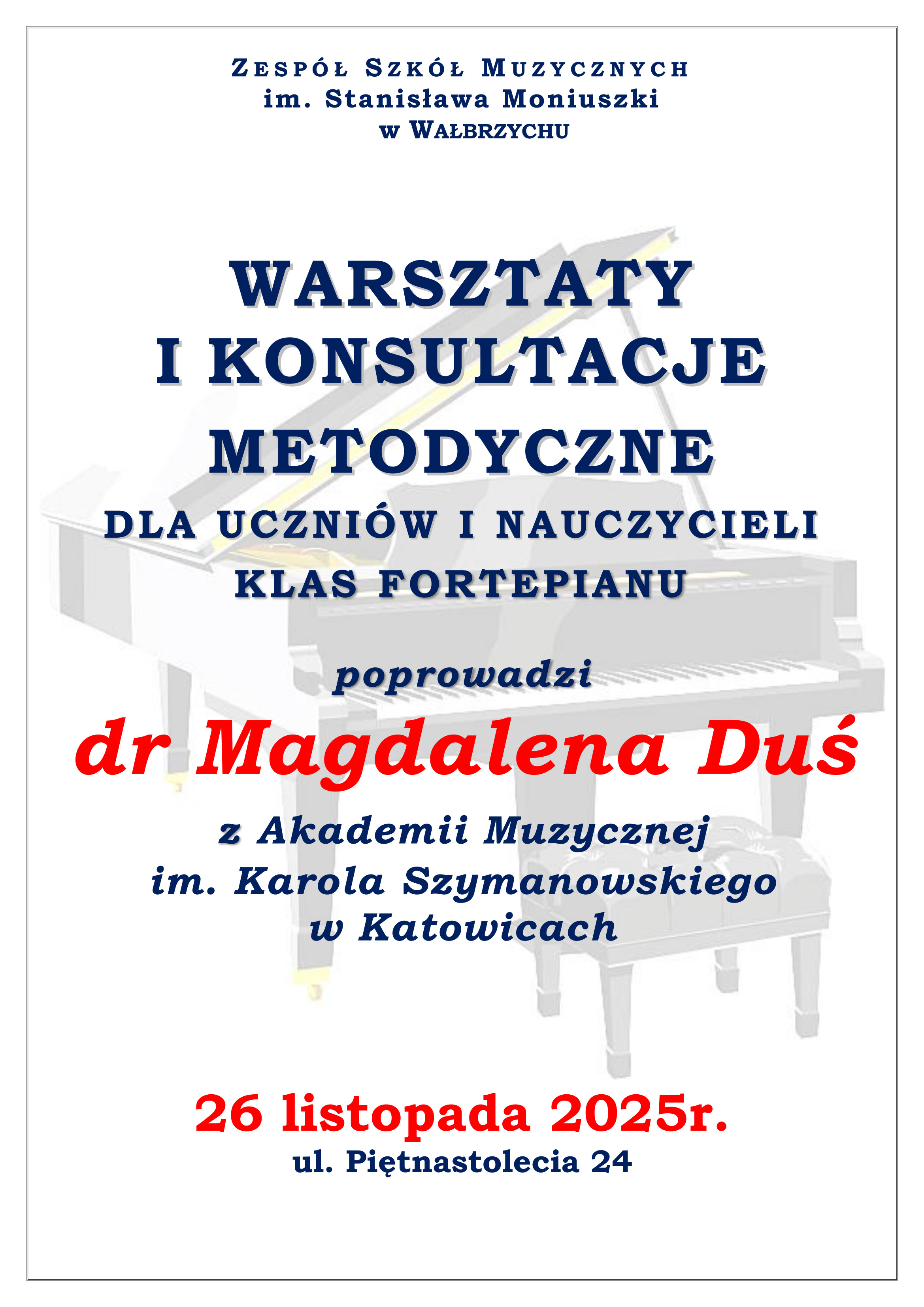 Warsztaty i konsultacje metodyczne - dr Magdalena Duś, fortepian