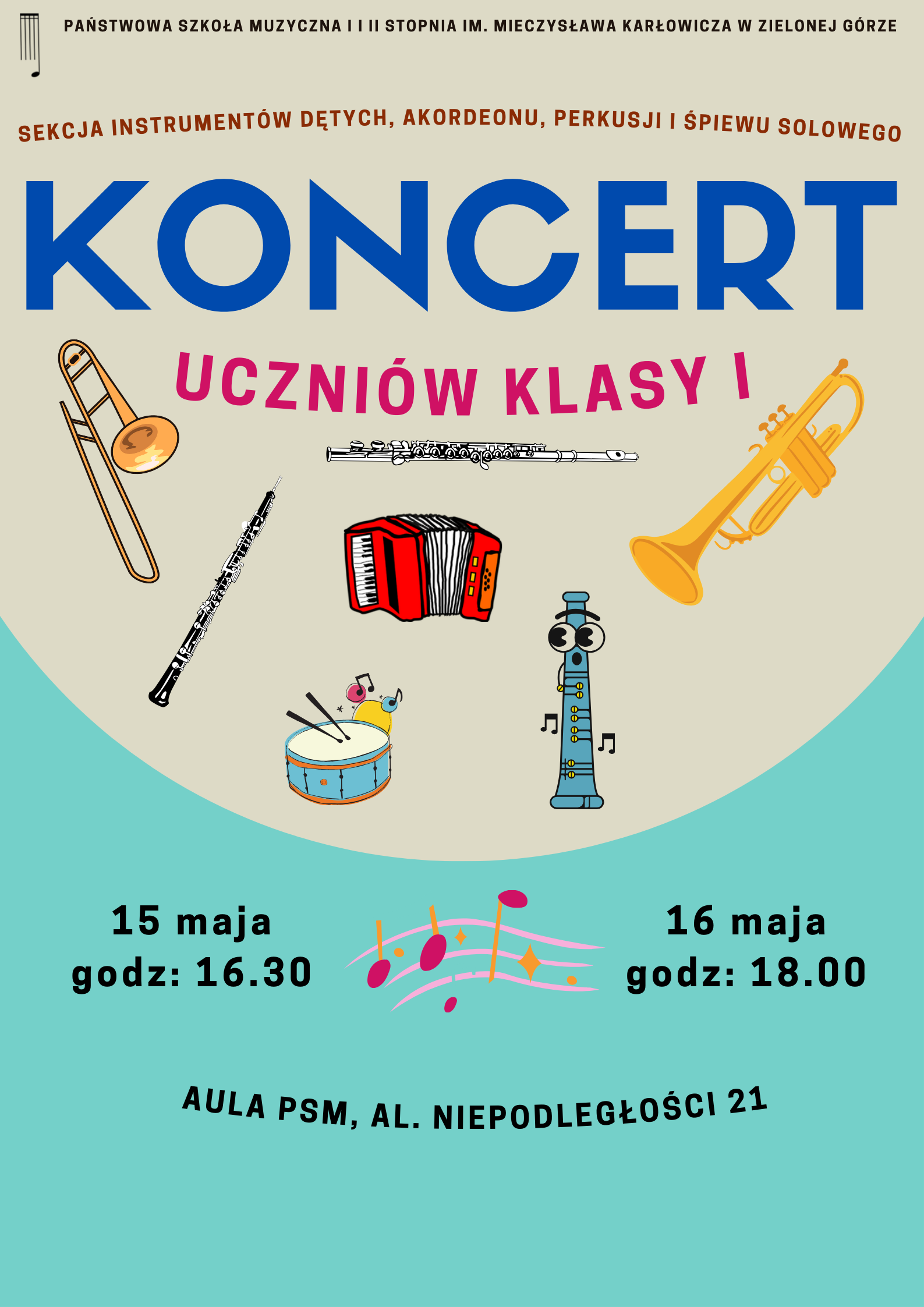 Koncert uczniów klasy I - Sekcja Instrumentów Dętych - 15 i 16.05.2024 r.