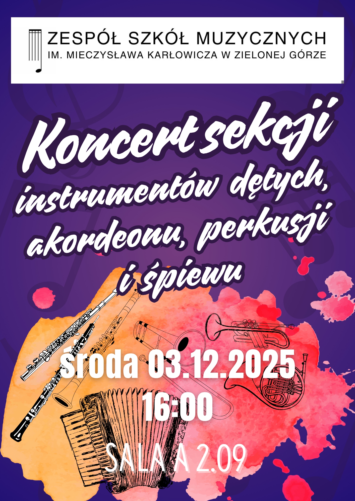 Koncert uczniów Sekcji Instrumentów Dętych, Akordeonu, Perkusji i Śpiewu Solowego - 3.12.2025 r.
