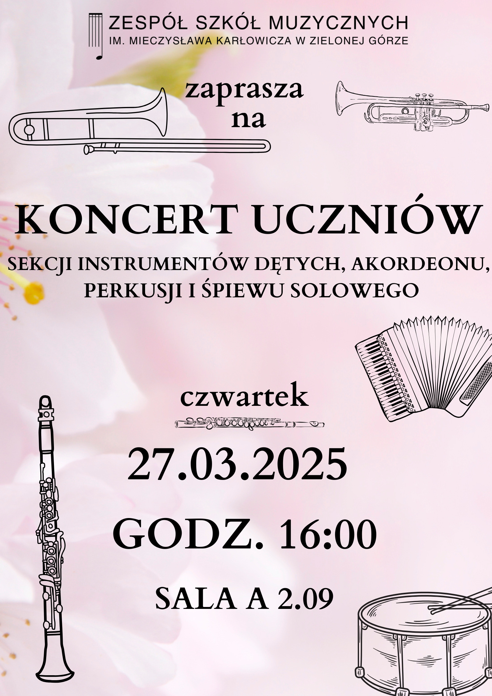 Koncert uczniów Sekcji Instrumentów Dętych, Akordeonu, Perkusji i Śpiewu Solowego - 27.03.2025 r.