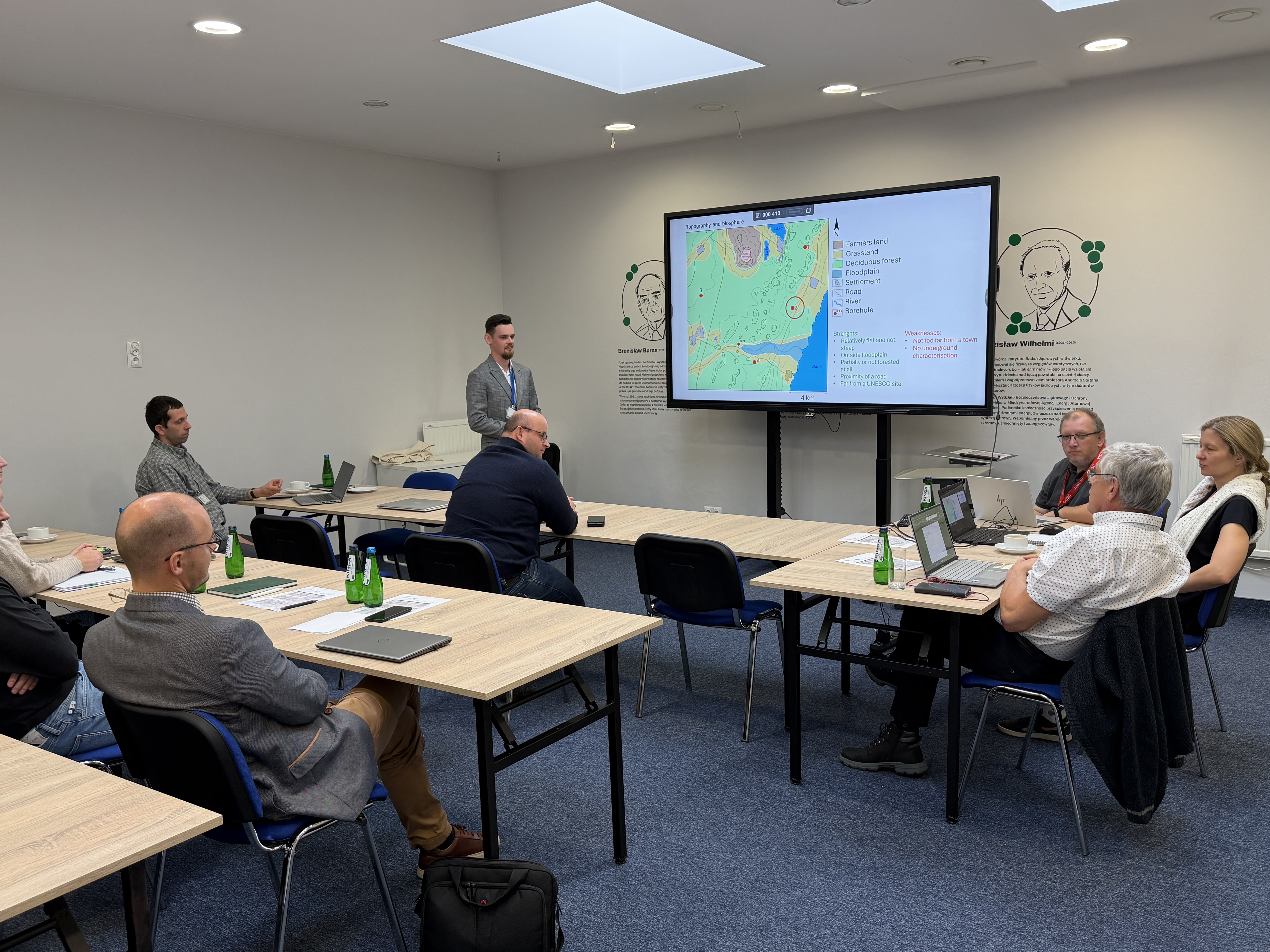 Przedstawiciele zakładu omówili obecną sytuację związaną z przygotowaniami do budowy nowego składowiska powierzchniowego odpadów promieniotwórczych (NSPOP). W części warsztatowej uczestnicy ćwiczyli przygotowanie wstępnej strategii oraz wybór miejsca dla przykładowego składowiska.