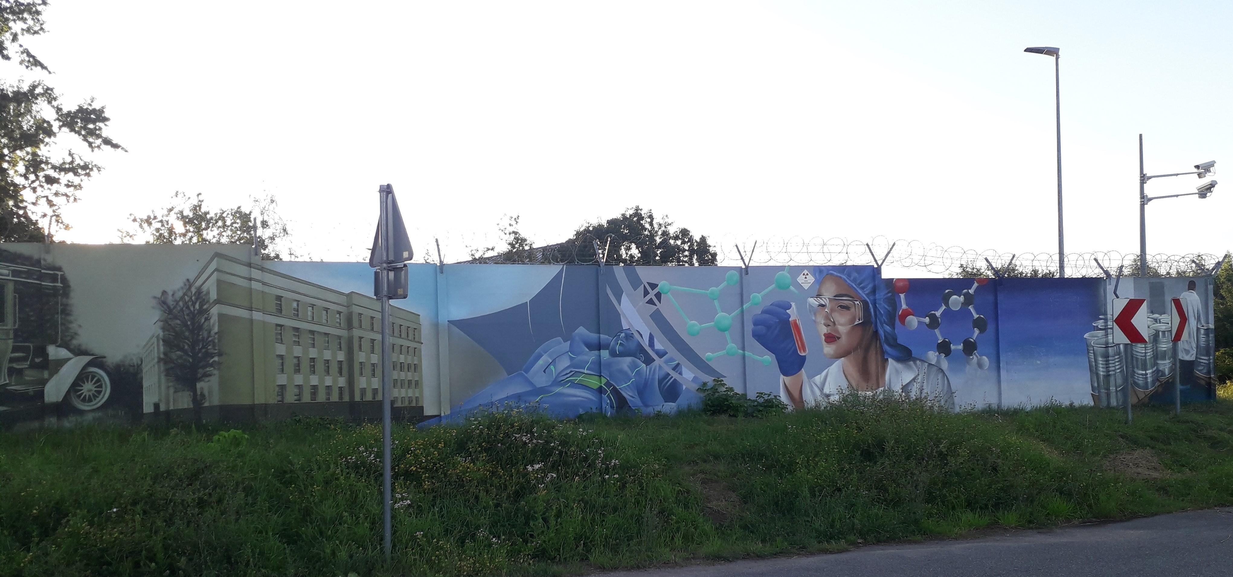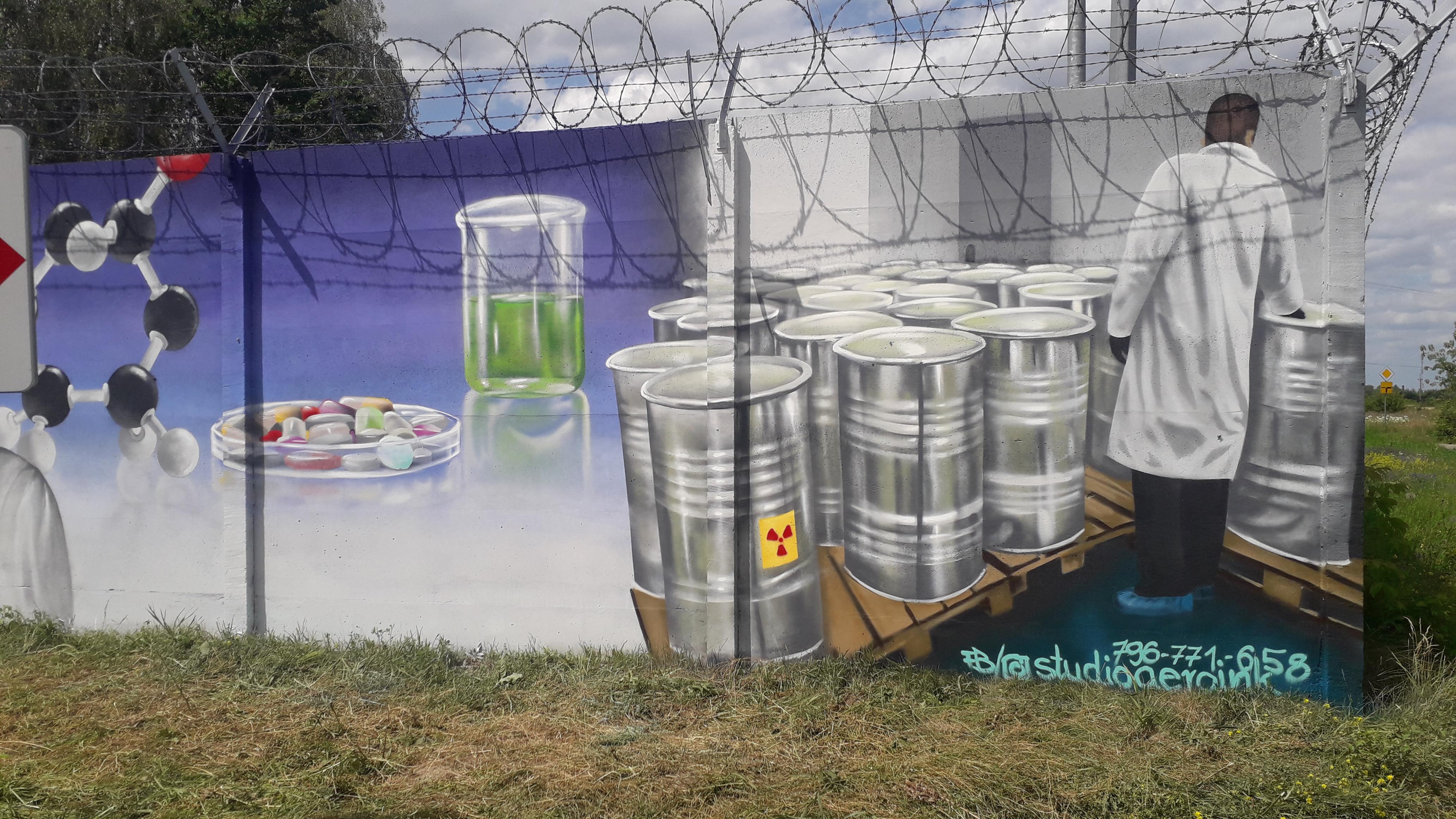 Mural na ogrodzeniu Krajowego Składowiska Odpadów Promieniotwórczych od strony różańskiego Placu Targowego